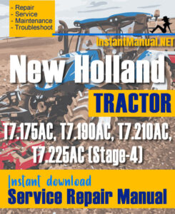 Instant download New Holland T7.175AC, T7.190AC, T7.210AC, T7.225AC (Stage-4) Tractor service repair manual. This manual content all service, repair, maintenance, troubleshooting procedures for New Holland T7.175AC, T7.190AC, T7.210AC, T7.225AC (Stage-4) Tractor.