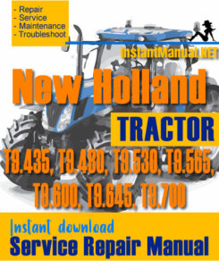 Instant download New Holland T9.435, T9.480, T9.530, T9.565, T9.600, T9.645, T9.700 Tractor service repair manual. This manual content all service, repair, maintenance, troubleshooting procedures for New Holland T9.435, T9.480, T9.530, T9.565, T9.600, T9.645, T9.700 Tractor.